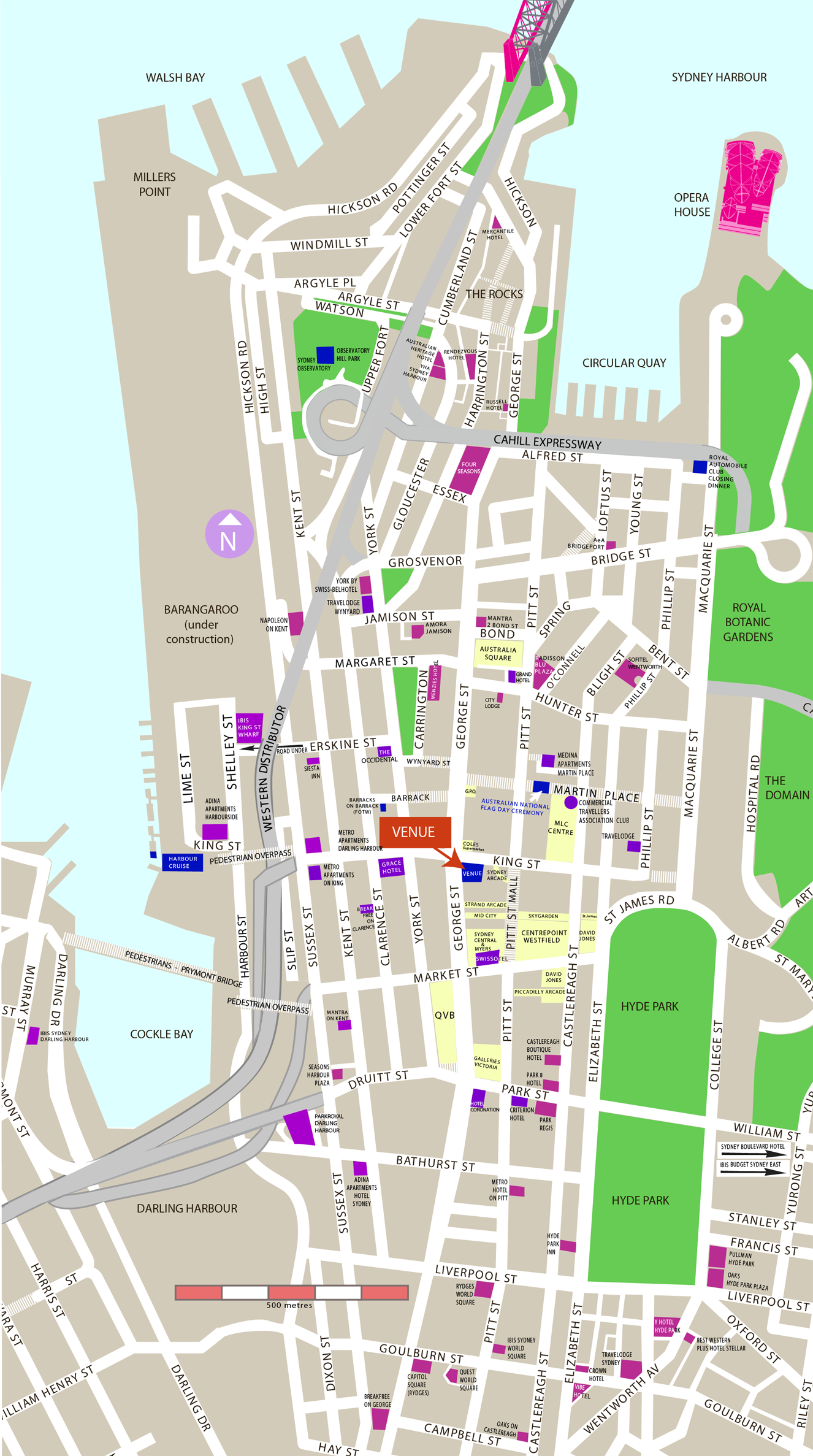 The venue for the Congress (the Telstra Theatre, Corner George and King Street, Sydney) is well located for accommodation. There are 20 hotels within 500 metres of the venue, and a further 200 hotels, short-stay apartments and hostels within a radius of 2 kilometres. |