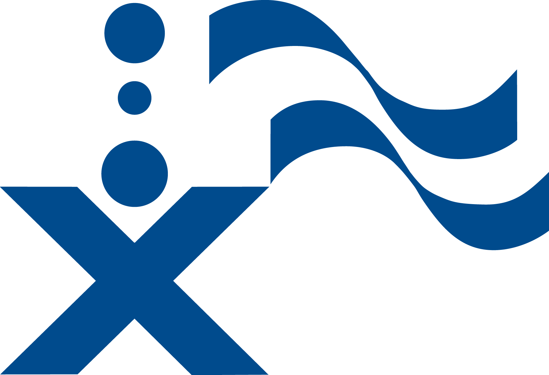 The leading X is surmounted by a blue dot to suggest a human shape, emblematic of a meeting.